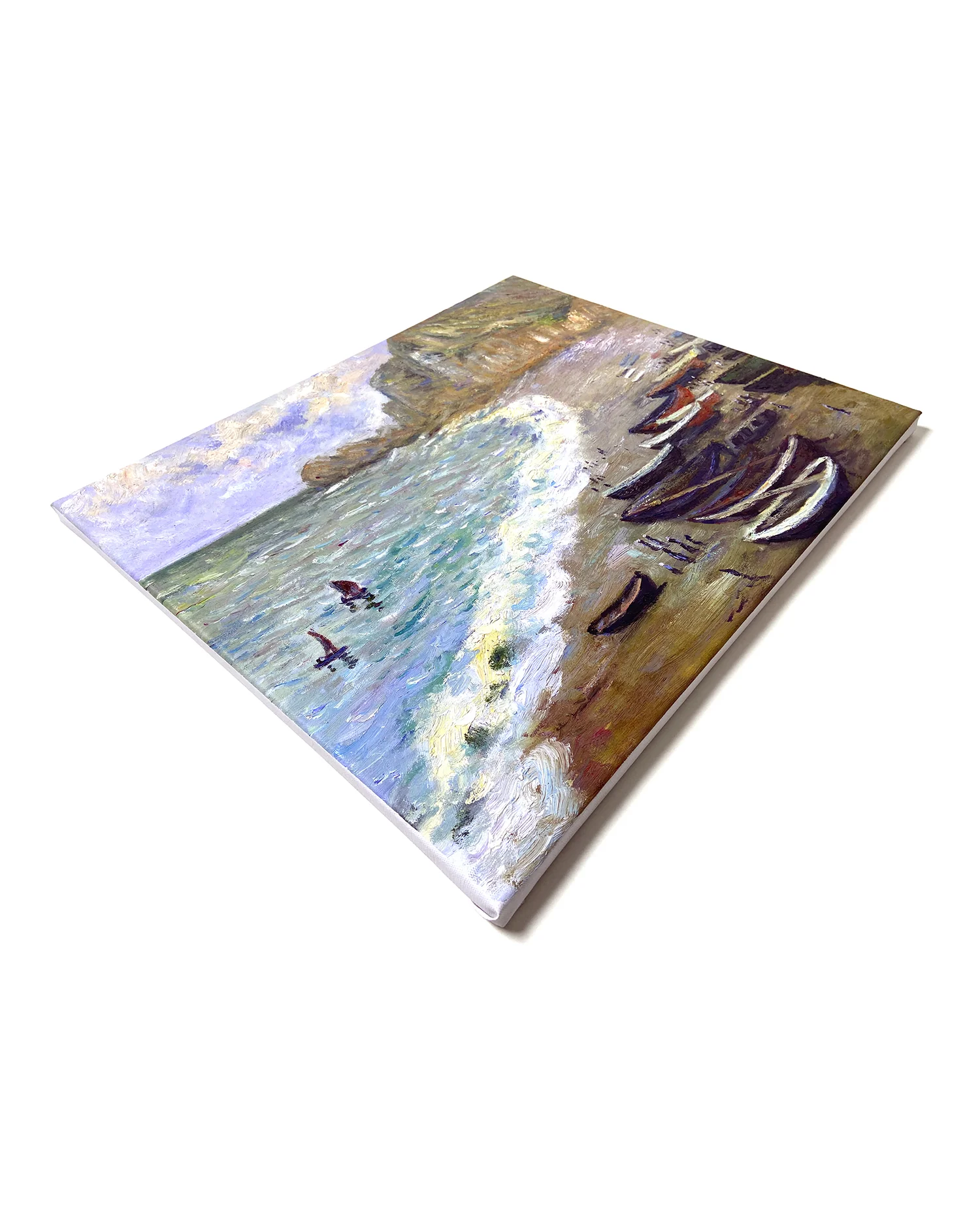 Claude Monet lebte einige Jahre in Etretat, um an einer Reihe von Gemälden zu arbeiten, die die Klippen und das Meer darstellen. Diese Landschaften waren bereits von berühmten Künstlern wie Delacroix und Courbet gemalt worden. Fasziniert von den Werken seiner Kollegen wollte der Künstler die Normandie auf seine eigene Art und Weise malen. Monet wanderte stundenlang am Strand entlang, immer auf der Suche nach einem Ort von außergewöhnlicher Naturschönheit und perfektem Licht, und stellte in diesem Meisterwerk die wilden Kalksteinklippen, die sich an das Meer schmiegen, getreu dar.